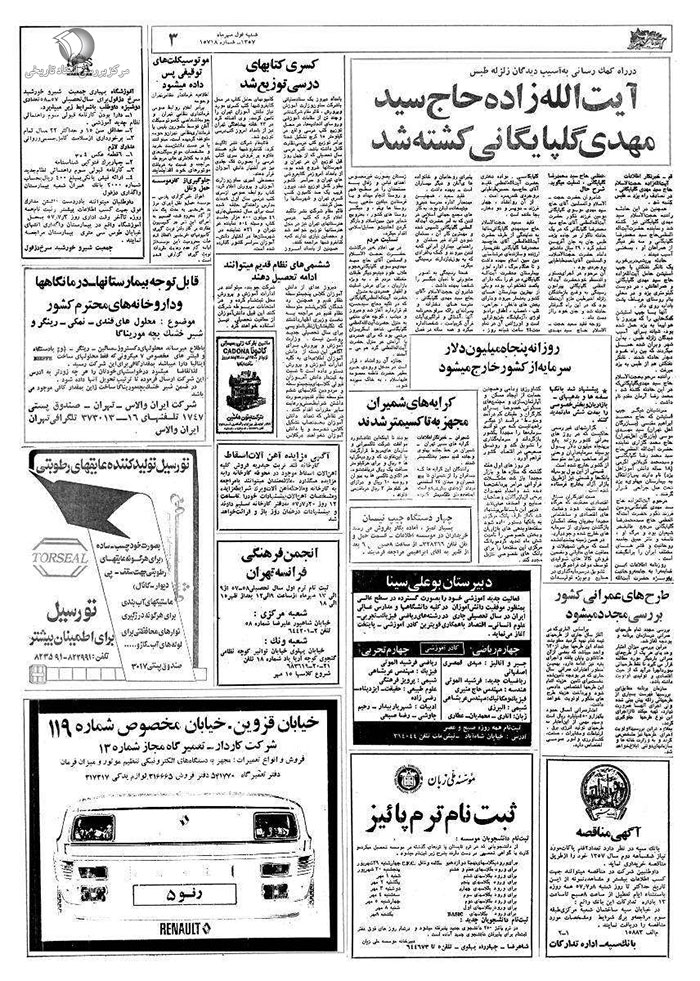 [50] . روزنامه اطلاعات، 15 مهر 1357، شماره 15729، ص 23.