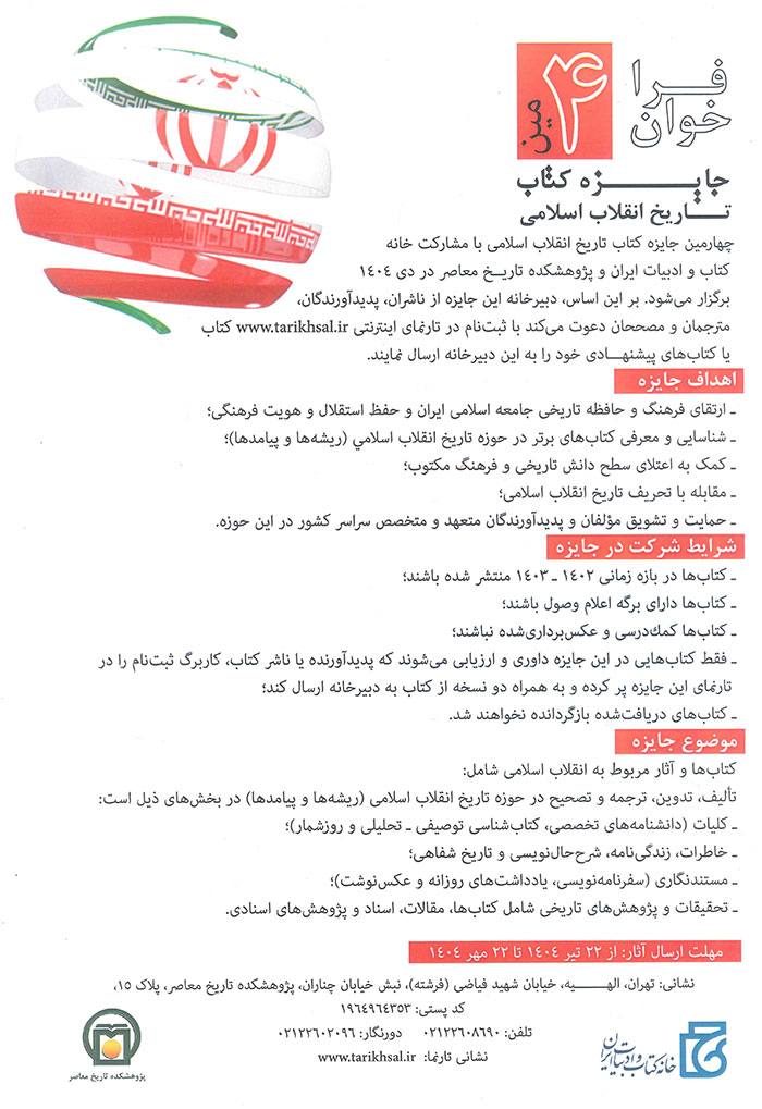 چهارمین فراخوان جایزه کتاب تاریخ انقلاب اسلامی