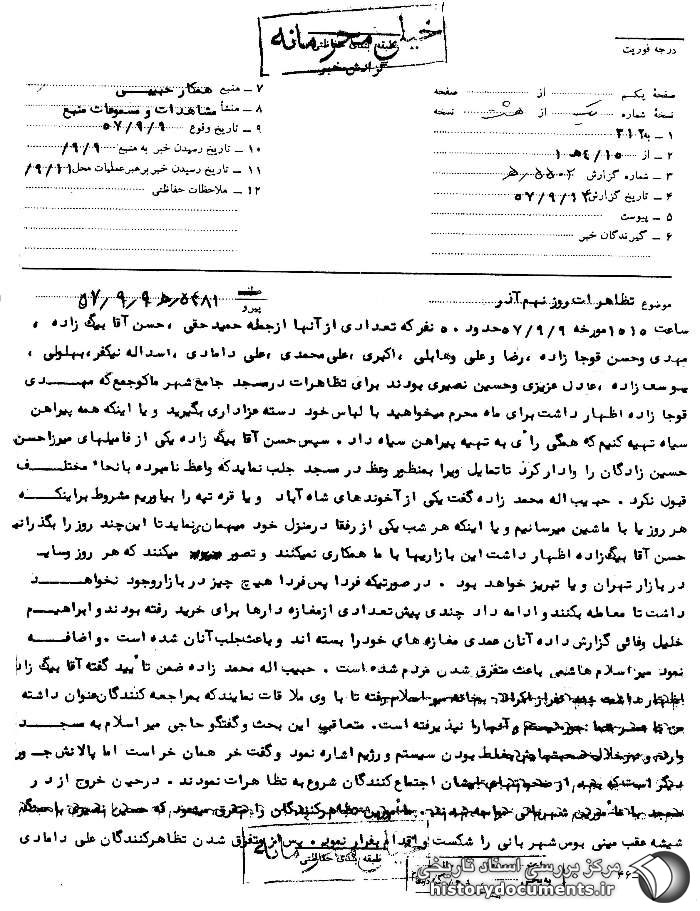 گذری بر انقلاب اسلامی در استان آذربایجان غربی به روایت اسناد ساواک- بخش نهم