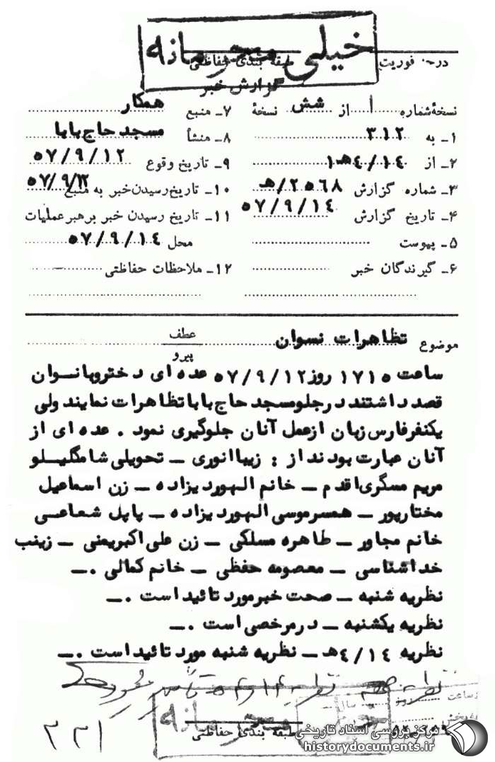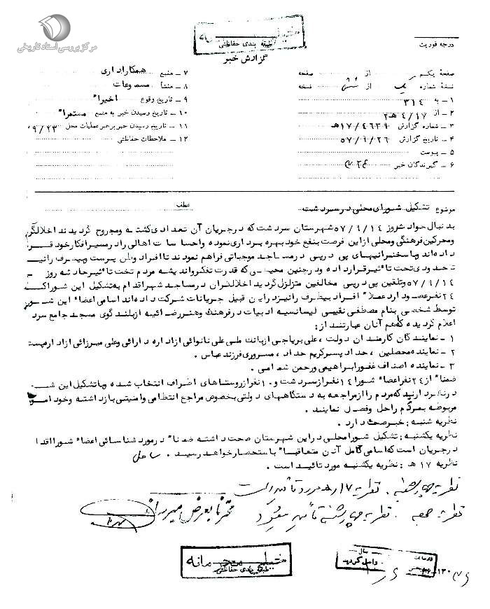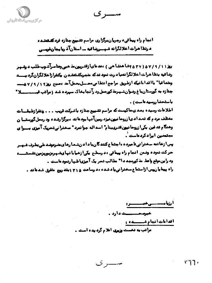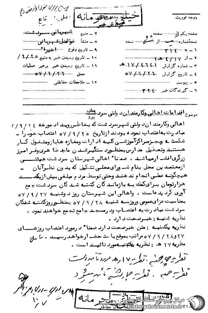 گزارش ساواک از تداوم مبارزه مردم سردشت بعد از حادثه 14 آذر 1357.