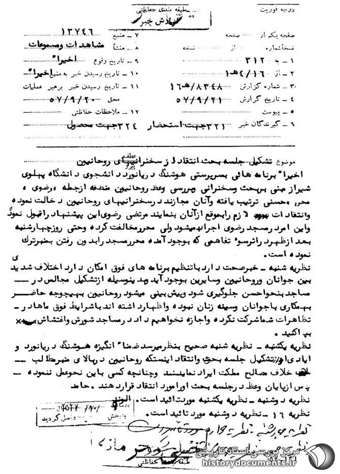 تحلیل مأمور ساواک از مباحثات هوشنگ دریانورد با روحانیون (آذر 1357).