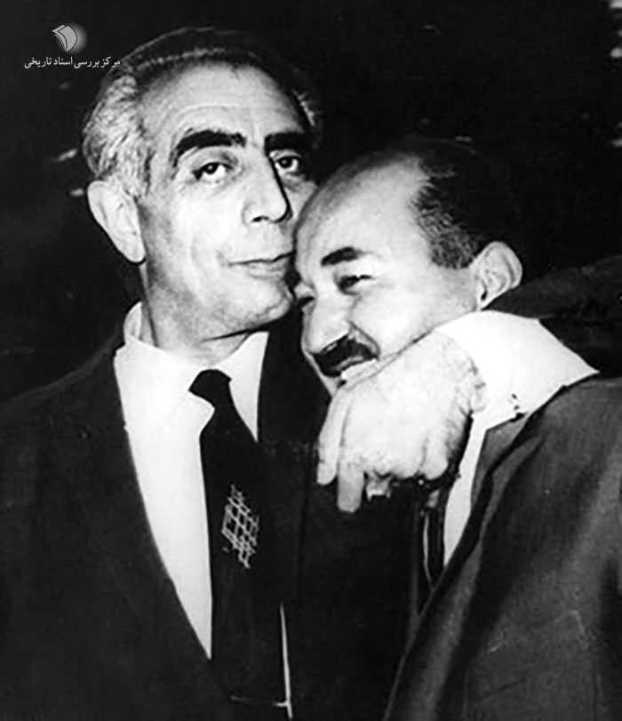 حسن ارسنجانی در کنار محمدرضا پهلوی