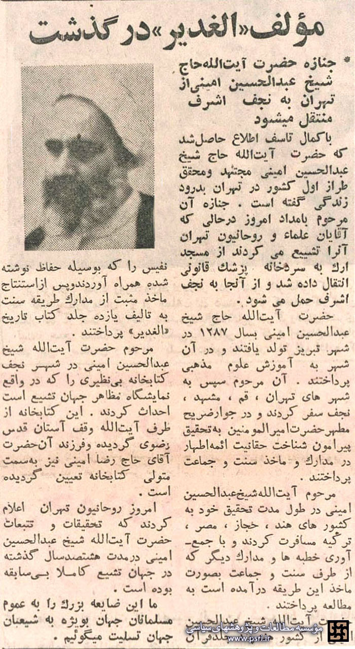 مروری بر کارنامه علمی و سیاسی علامه شیخ عبدالحسین امینی (صاحب الغدیر)