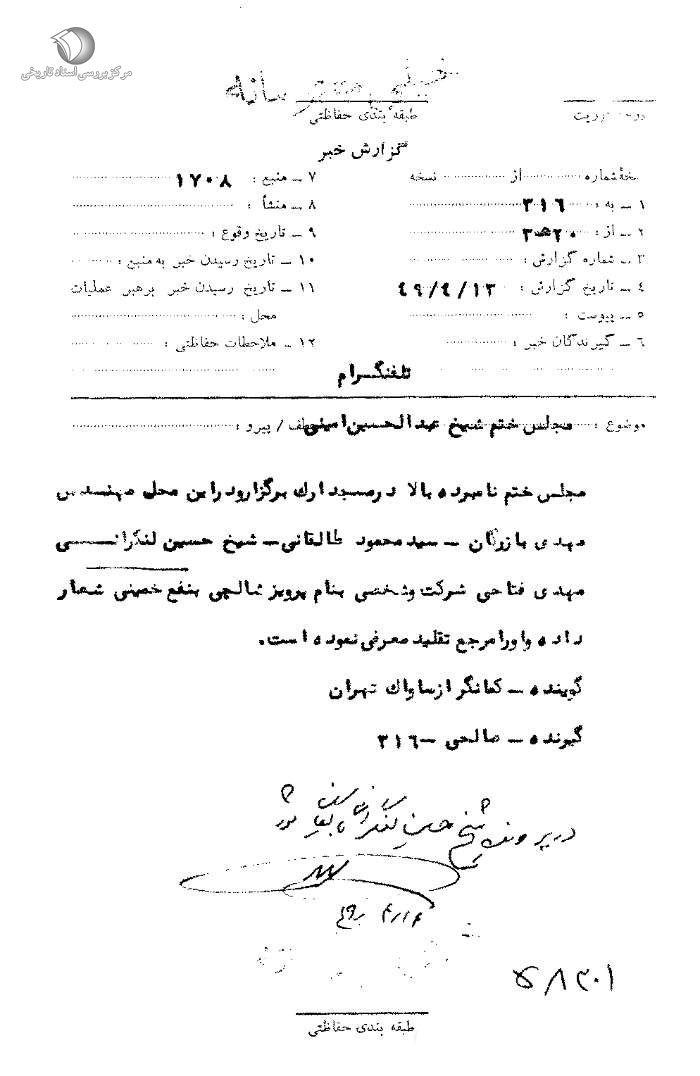 حمایت علامه امینی از امام خمینی
