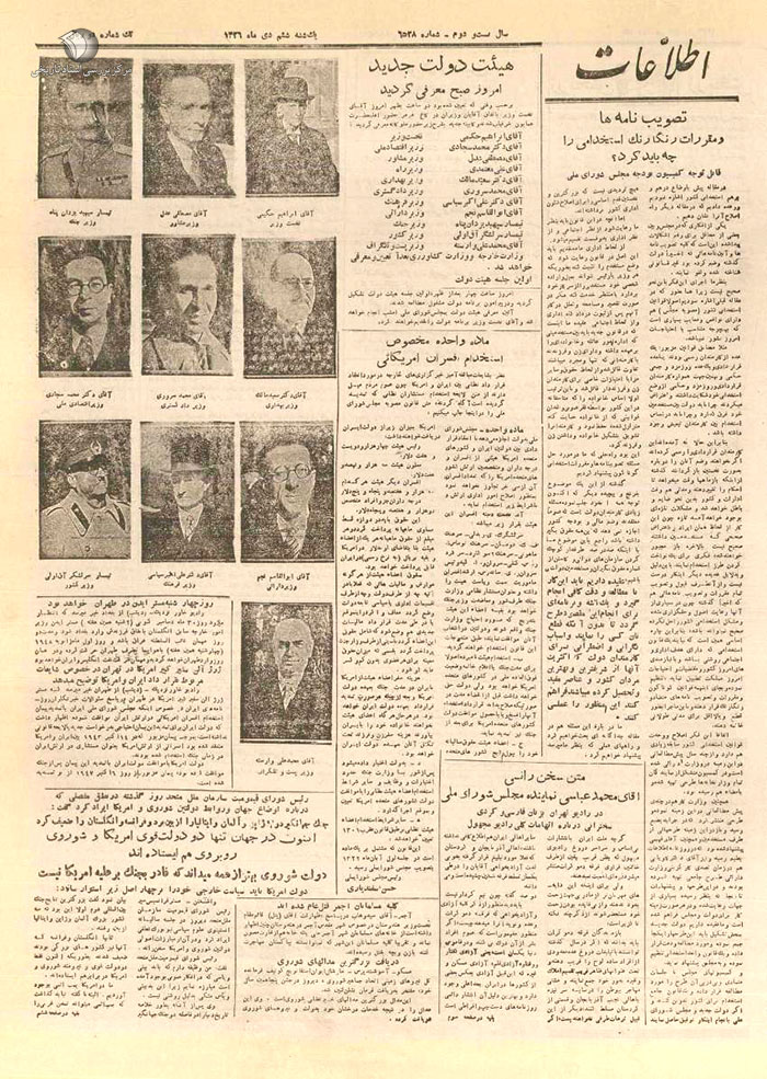 [44] وضع دولت، روزنامه اطلاعات، سال بیستم، شماره 5956، شنبه 22 دی 1324، ص 1.