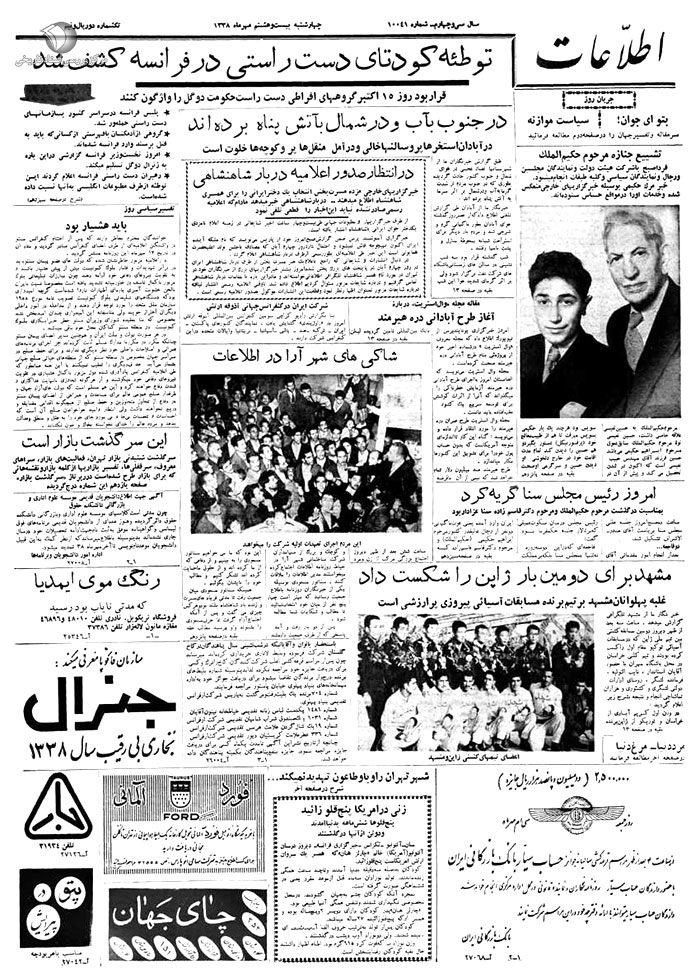 بازتاب خبر درگذشت ابراهیم حکیمی در روزنامه اطلاعات ـ 27 مهر 1338
