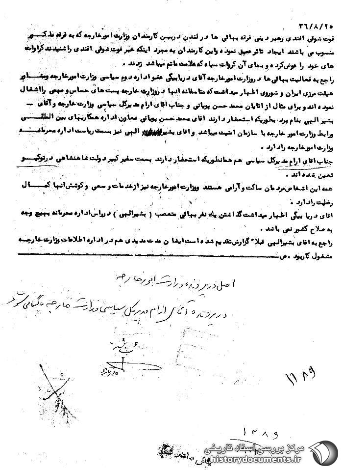 بازتاب فوت شوقی افندی در میان بهائیان وزارت امور خارجه شاهنشاهی پهلوی